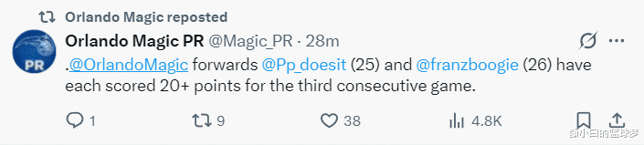 魔术的进攻完完全全是依靠双锋线,他们已经连续三场比赛一同超过20+的数据——