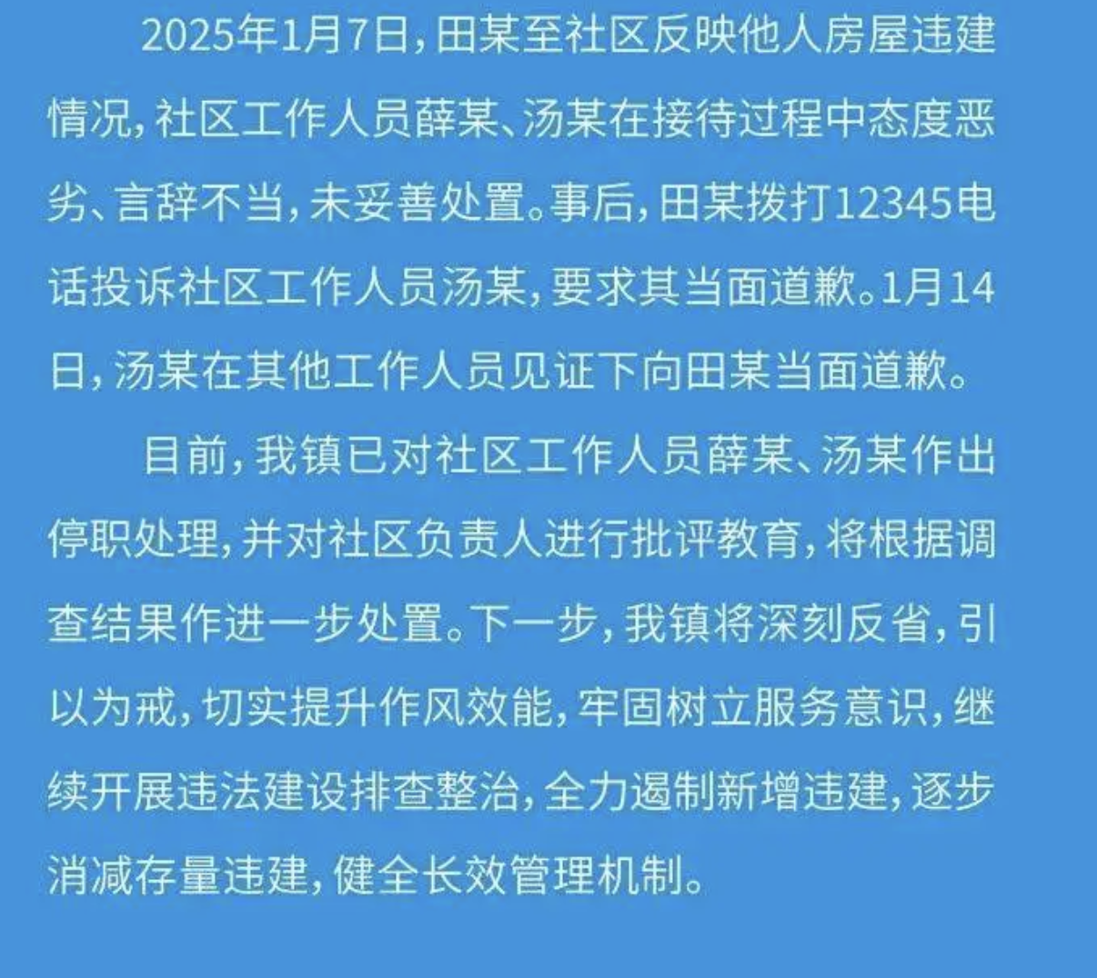 舆论压力之下,官方迅速做出了回应:涉事的2名社区工作人员被停职。