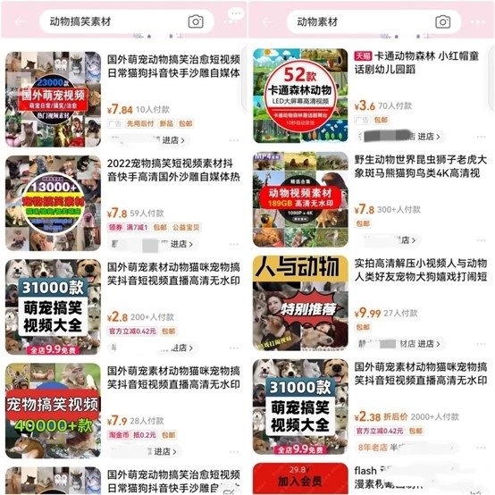 1.从电商平台购买,比如淘宝、拼多多等,这些平台都有卖虚拟资料的店铺。在这些平台上搜索动物视频、萌宠、宠物搞笑视频等等,都有很多素材可以选择,而且成本也不高。