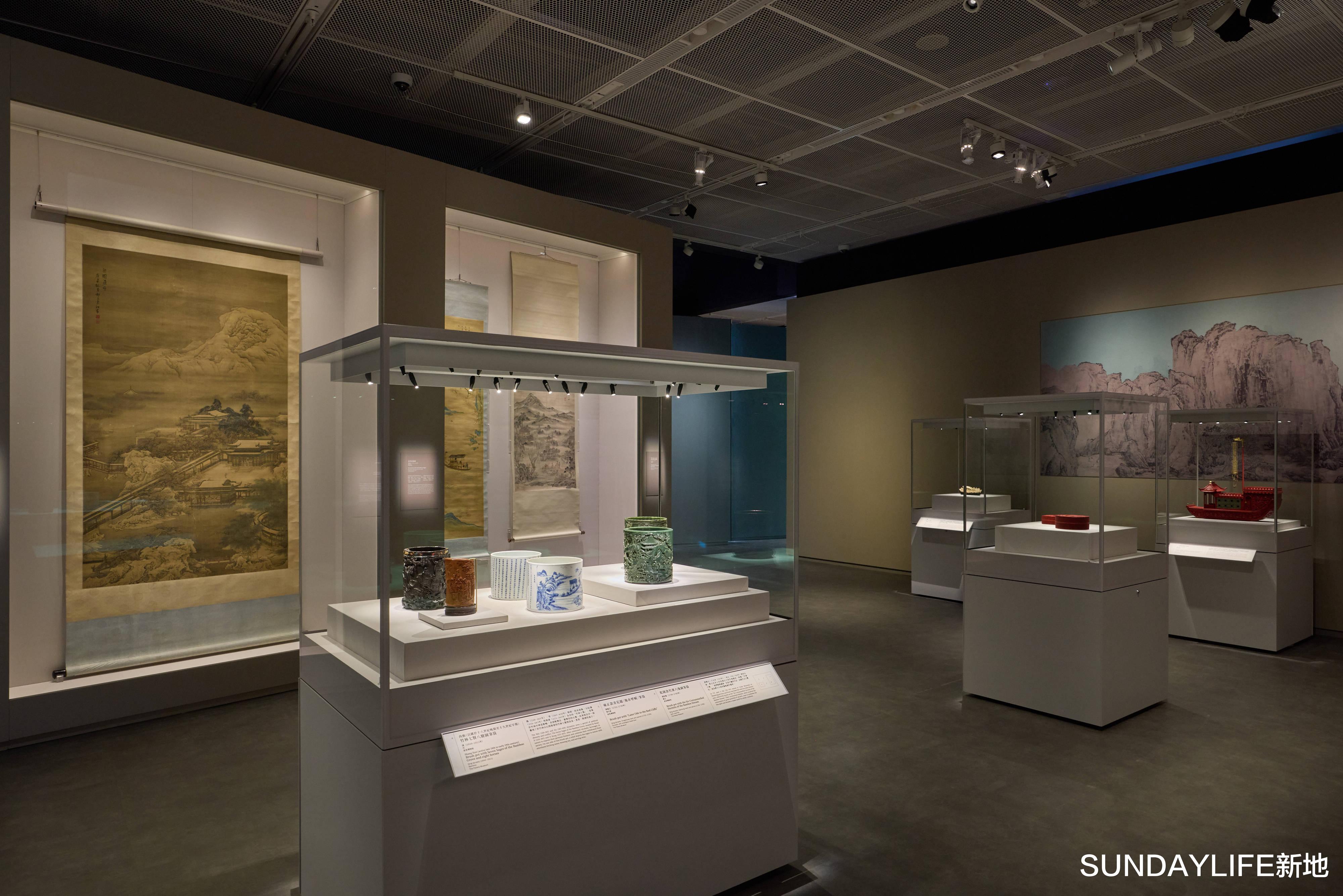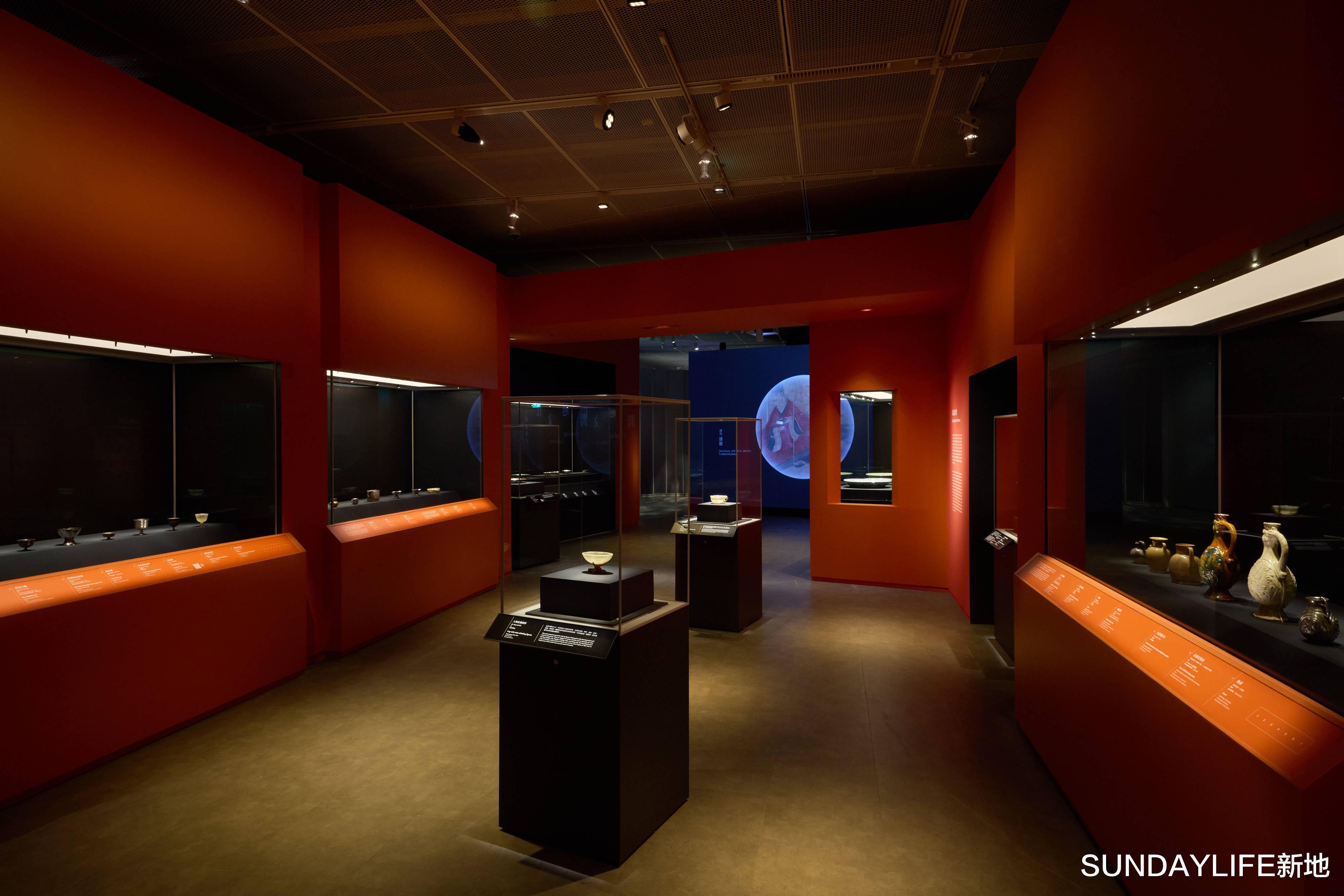 紫禁城内日理万机的皇帝并没有固定的吃饭地点 ,用膳的时间一到,御膳房便须将餐具和饭菜送到皇帝所在地点。受此启发,展览从历史文化和传统风俗中确立三个与「移动」食物和食具有关的主题,包括「跨越生死」、「跨越文化」、「跨越山水」三个单元,分别探讨饮食器具在精神、文化与空间中的移动。展览最后单元「跨越时间」则运用多媒体手法,让观众在虚拟餐桌上探索当代食器与传统饮食文化之间传承创新的关系。