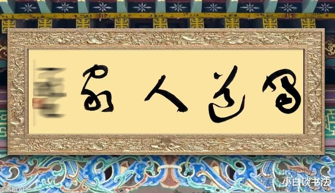 难不成,真是朋友调侃的那样,内容是“妇道人家”,可以断定不是,倘若是这个内容的,恐怕就不会有如此多的男爷们吃饭了,不过,这4个字的书写,还是有水平的,虽然笔者不认识这四个字,那种流畅感,表现的十分完美,并且,对草书的“意”有着深刻的理解,甚至还很好地嫁接了章草的笔意,写的十分自然,洒脱,单凭这字,恐怕也能够激起不少朋友的好奇心,也希望有水平的网友朋友,能够做出正解。