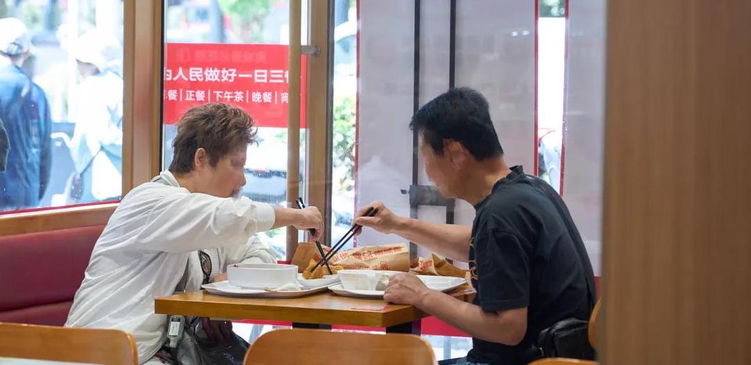 他们在这家明亮整洁的餐馆里,享受着冒着热气的粥、现磨的豆浆、酥脆的油条,还有那满满当当的各式小菜。