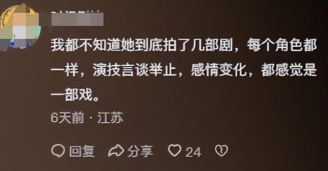 "殷桃现在演什么都是一个样,根本没有区别。"