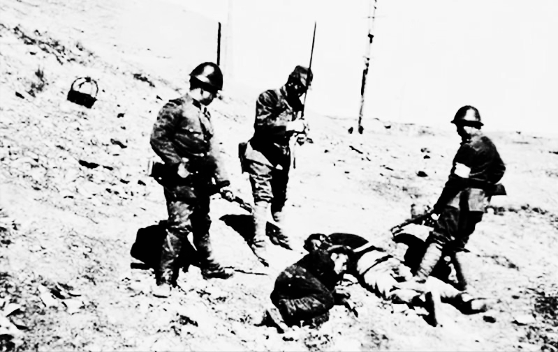 然而,命运并未眷顾这位可怜的女子。不久之后,一群日本士兵闯入了小屋。他们看到马桂英,眼中立刻露出了贪婪与残忍的光芒。这些士兵无视她的哀求与挣扎,将她强行拖出小屋,带到了镇上的广场上。