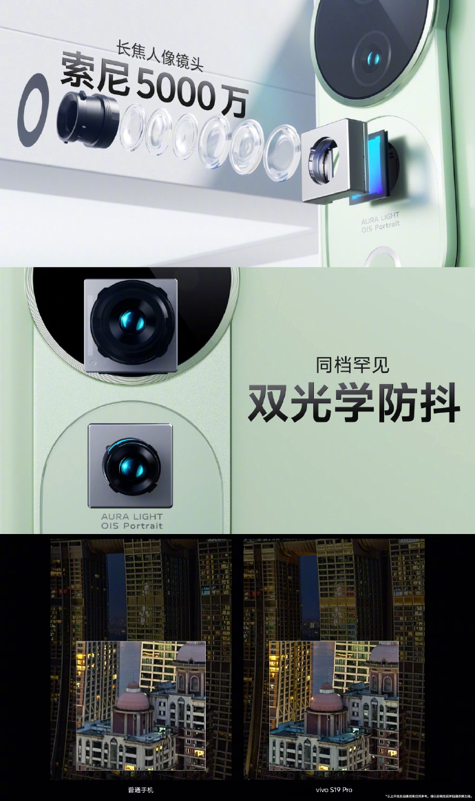 vivo S系列的影棚级摄影已经深入人心了,从vivo S18系列的智慧柔光就已经获得了一致的好评,这次vivo S19系列更是重磅升级,带来了影棚级变焦柔光环,柔光与相机的变焦同步,补光灯随着拍摄人物的远近实时调节,自动调节柔光环后拍出来的照片都是面部柔和、光影均匀的氛围感人像。除了前置十分给力,镜头的后置也十分给力,vivo S19系列行业首发5000万像素的索尼IMX921大底、5000万像素的索尼长焦人像以及行业最强前置防畸变广角双柔光,配合五大专为人像优化过的黄金焦段,覆盖了日常拍摄全场景,无论是适合叙事的广角,还是善于刻画情绪的长焦,都能轻松拍出完美人像。