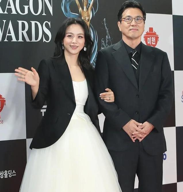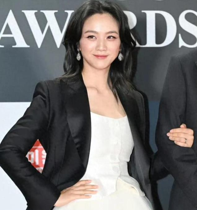 在第45届青龙奖颁奖典礼上,她身穿白色纱裙搭配黑色短西装,造型简约而不失大气,完美展现了她优雅的气质。