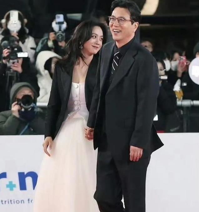 在第45届青龙奖颁奖典礼上,两人十指紧扣,形影不离,眼神中充满了爱意。