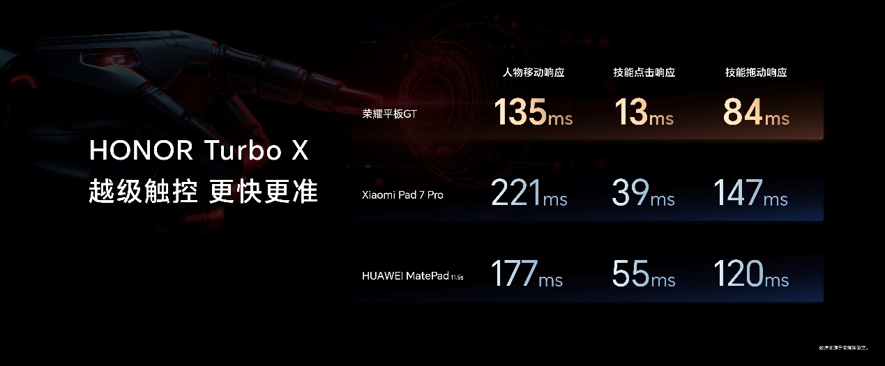 除了渲显分离技术,HONOR Turbo X还支持AI画质增强算法,让游戏画面突破原生分辨率限制,提升至PC级画质水平。AI触控增强技术则通过自研多指触控增强算法,让点击响应提升27%,移动响应提升20%,在射击类游戏中助击杀迅捷精准。