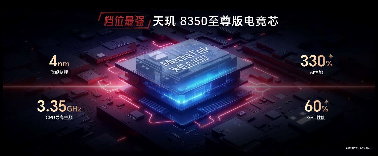 荣耀平板GT搭载同档位最强电竞芯天玑8350至尊版处理器,采用台积电第⼆代4nm制程,CPU最高主频3.35GHz,AI 性能提升330%,GPU性能提升60%,为稳定且顺畅的性能体验保驾护航。