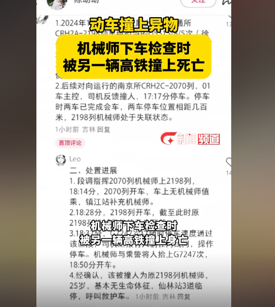 这位机械师为了尽快排除故障,让列车恢复运行,却不幸遭遇了意外。他可是为了大家能准时回家啊!真是让人难过! 铁路部门的安全措施到底到位不到位?