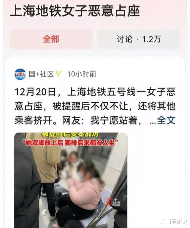 据官媒在12月21日报道:12月20日,上海地铁,女子一人占了两个座位,男子要求其让座后,女子反而直接占了“三座”的事件,瞬间引发广泛的关注和热议!