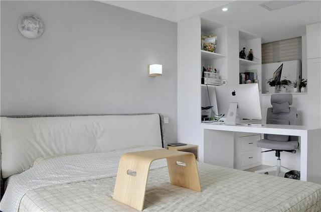 梳妆台和书桌的结合,让卧室的功能更立体和完整。放弃传统床头柜后,你会发现,家里人各种各样的诉求,都能得到满足。