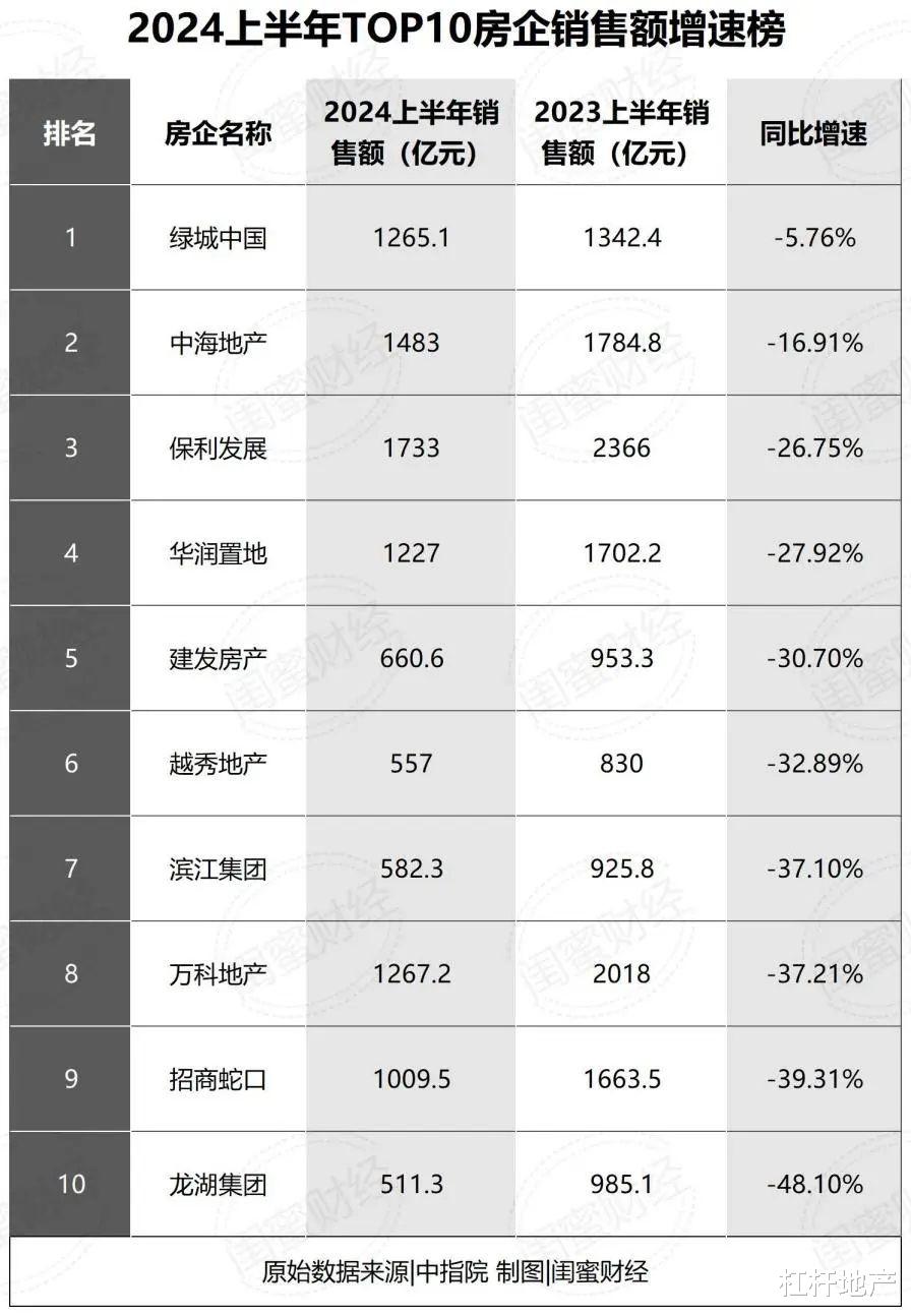 实际上不止万科股价悲催,其他上市房企情况也差不多。2024年上半年,市值百强房企中,仅有14家房企总市值环比增长,有86家房企总市值下跌,占比超过八成。A股整个房地产行业上半年跌幅约为20.44%。