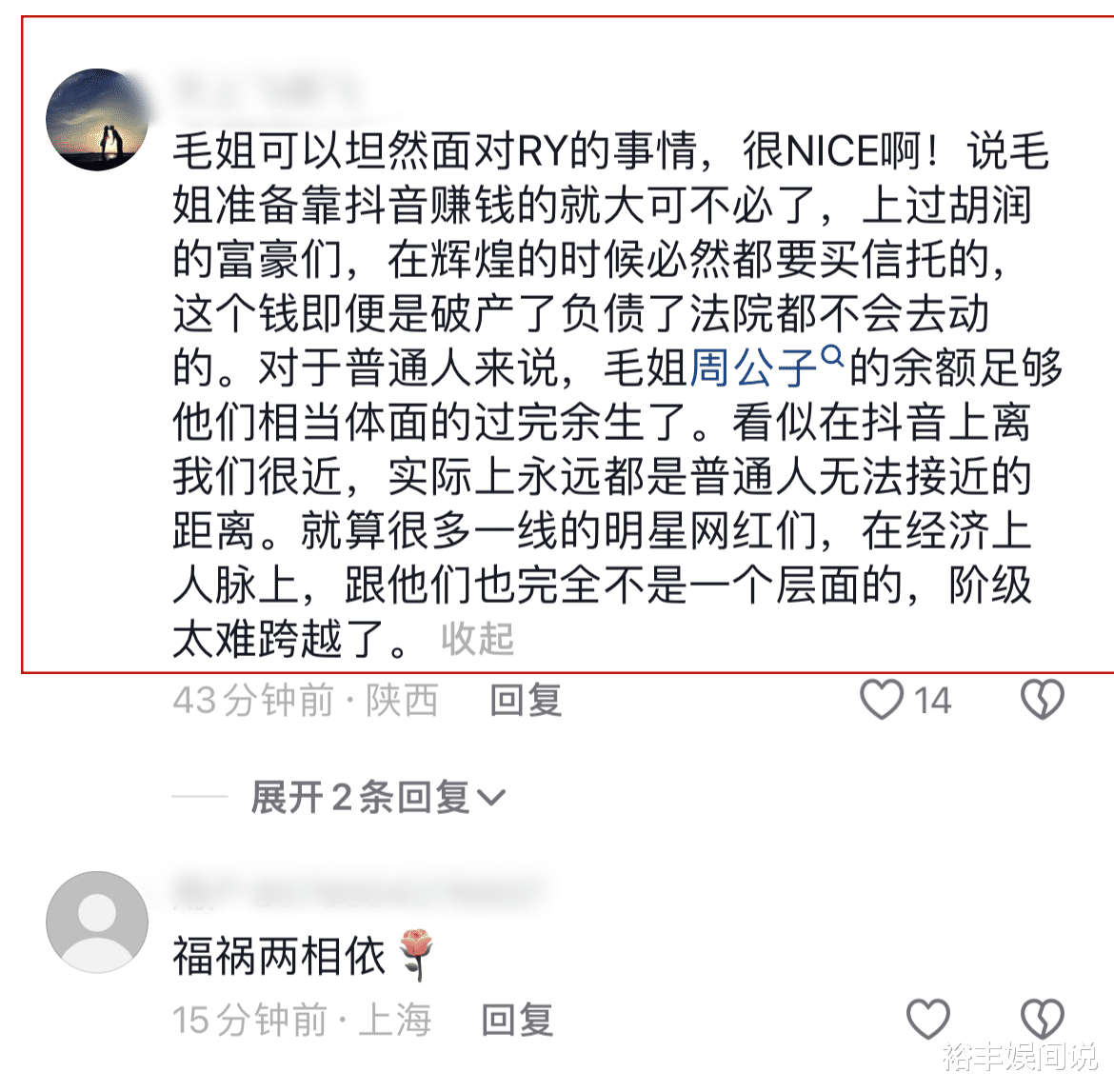 两人的视频账号上也没有见到彼此的身影,而且毛玉萍称呼周正毅为“周公子”,这就说明两人的情谊早已不在。官方曾在报道的时候,详述两人的关系是夫妻,其实,两人只有夫妻之实,并没有夫妻之名,也就是说两人并没有领结婚证。