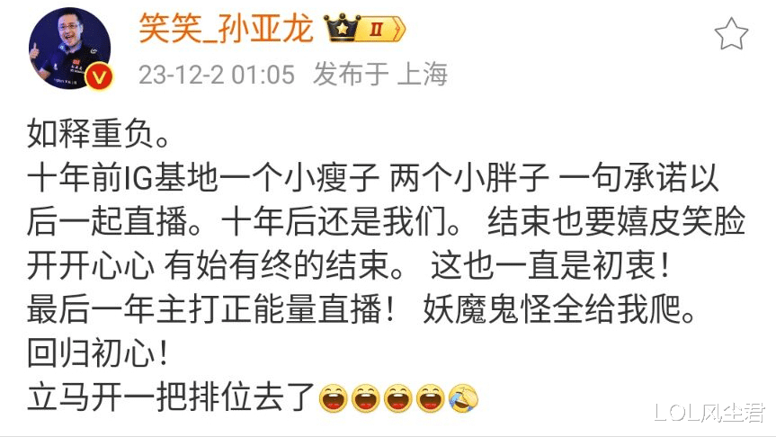 我李云龙说几句!这些LOL选手退役的消息真是让人感慨万千啊。这些年来,他们一直在战场上拼杀,为了荣誉和胜利而努力。