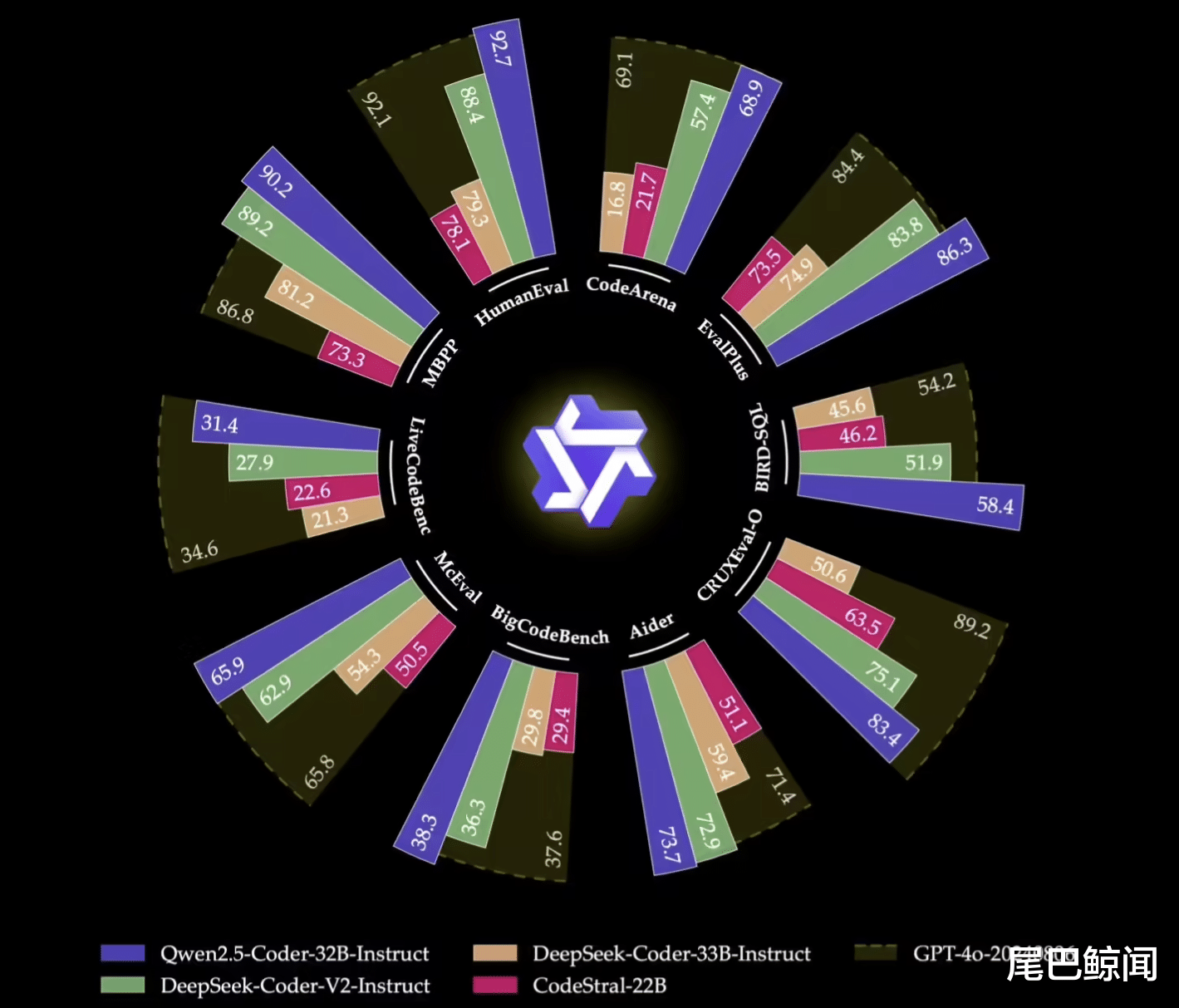 阿里通义千问开源 Qwen2.5-Coder 全系列模型阿里通义千问宣布开源 Qwen2.5-Coder 全系列模型,官方宣称其代码能力已与 GPT-4 相当,其中,旗舰模型 Qwen2.5-Coder-32B-Instruct 被誉为目前 SOTA(State Of The Art,即最先进技术)的开源代码模型。