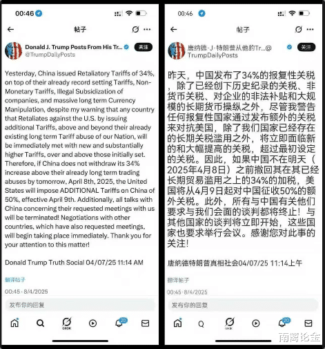 一家墙倒众人推和无差别扫射,大家还是能分辨的,无差别加关税必然会导致报复。目前全球第二大和第三大经济体(兔子和欧盟),一个表示要对等反制,一个也态度强硬,大家互相对抗,又乱成了一锅粥。(关于阿美政策下次再讲)