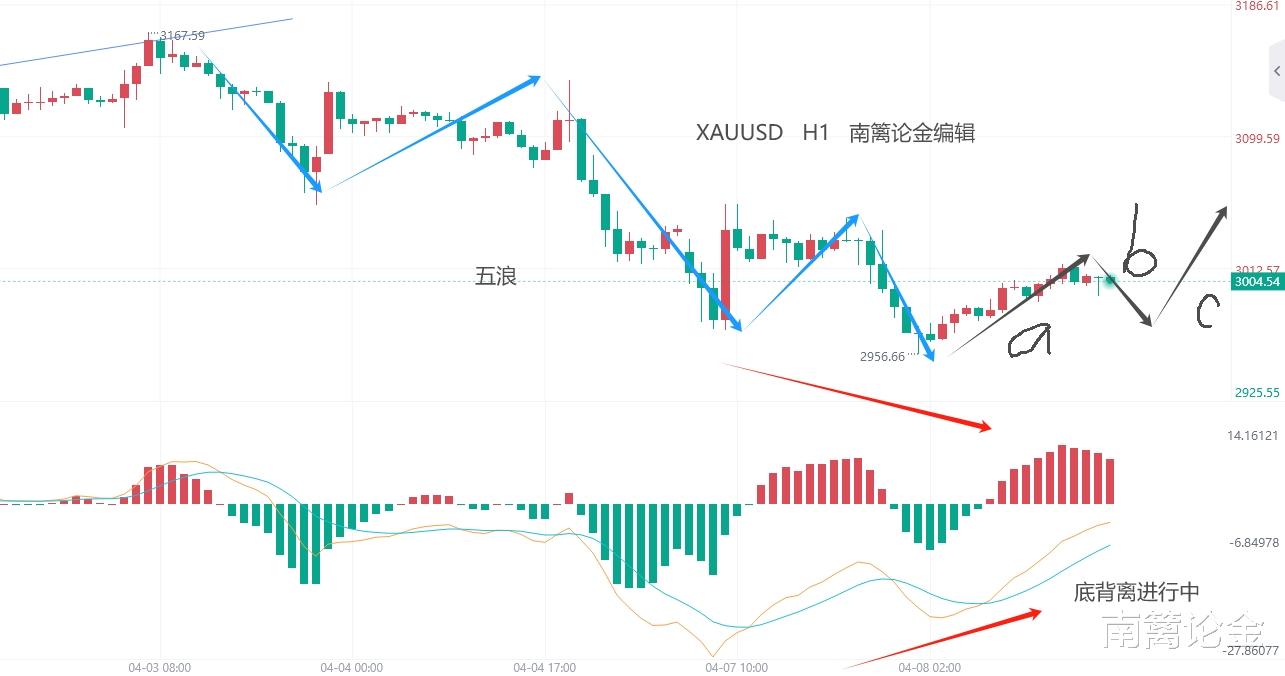 小周期上五浪成型,三浪反转的节奏里A浪反抽,跟B浪的拐点低于3040—50,即可迎来一波下跌浪,下一站则是最好守在2972之上完成C浪上拐,这样既能完成小时图的底背离修正,又是C浪冲击前高50一带的最好助力。冲不破怎么办?那就再来一次很不错的调整呗。