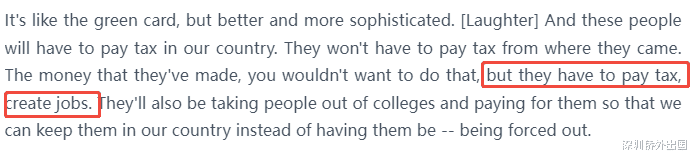 然而,他也明确表示,金卡持有者必须履行一定的义务,包括缴纳税款、创造就业机会等。至于“必须创造就业机会”的具体要求,是否会像EB-5项目那样严格,目前尚不明确。