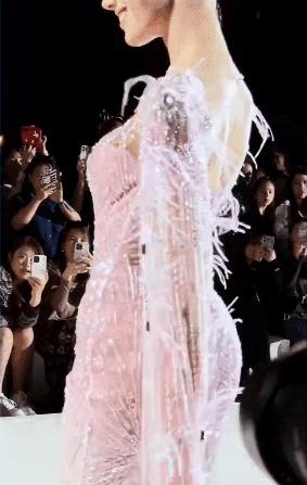 当她走到T台的尽头面对镜头摇摆的时候又像是一个翩翩的仙子,曼妙的曲线十分的动人,仿佛比现场璀璨的灯球还要耀眼。
