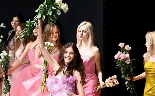 一位来自俄罗斯的十八岁模特Domi身着一身粉色的婚纱出场,因为超绝的腰臀比例引起了现场许多观众的惊叹。
