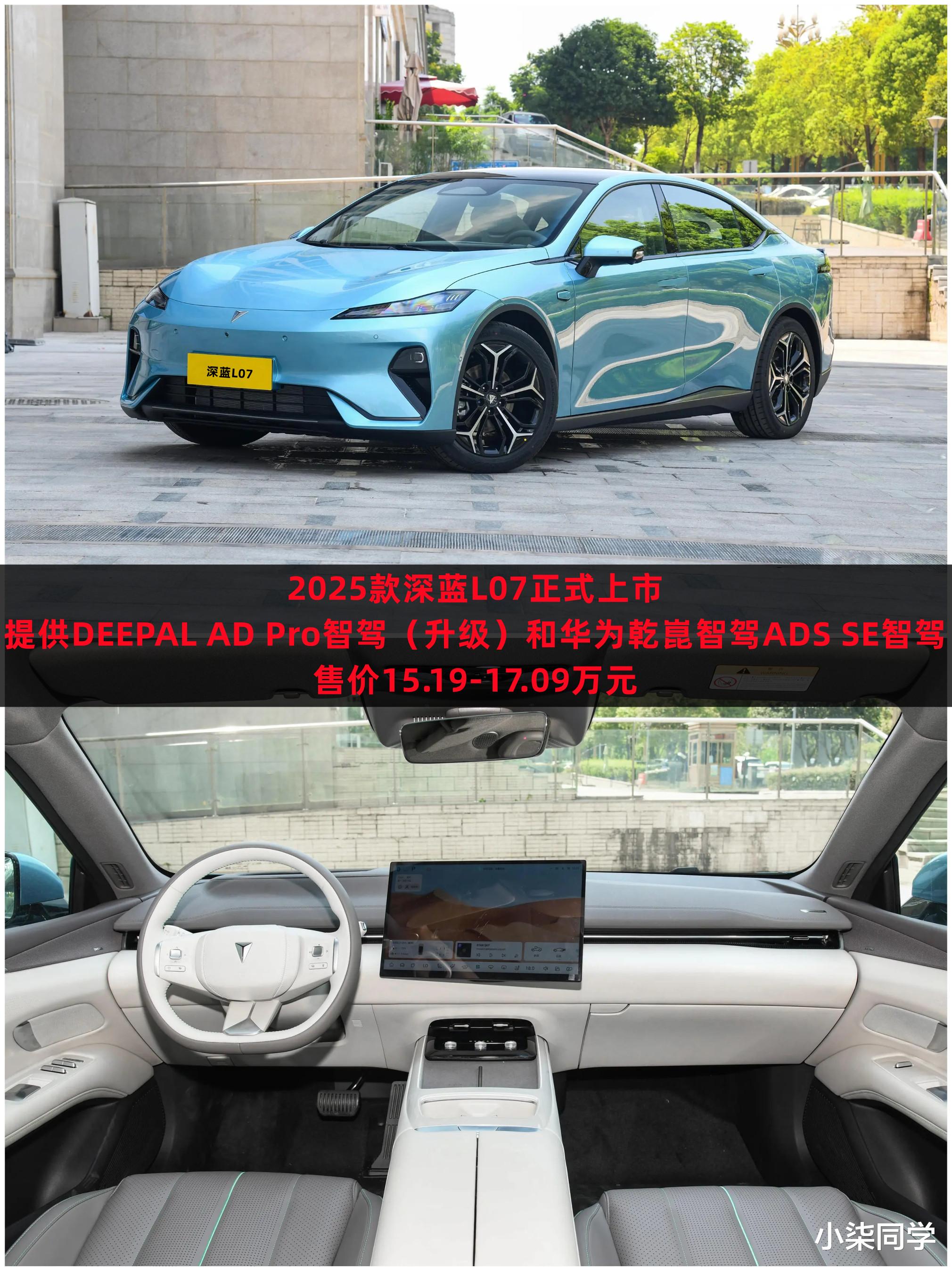 日前,深蓝汽车旗下新车——2025款深蓝L07正式上市,提供2个版本(深蓝智驾AD PRO版和华为乾崑智驾ADS SE版)共9款配置车型,售价15.19-17.09万元。作为年度改款车型,新车主要升级了深蓝智驾AD PRO智驾系统(华为乾崑智驾ADS SE智驾系统继续保留),并且还针对车型配置进行了升级。