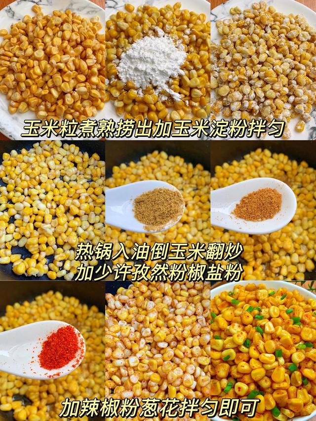 玉米不仅口感香甜,还富含膳食纤维和多种维生素,特别适合在秋天干燥的季节里食用。玉米中的纤维素有助于润肠通便,帮助排出体内的毒素,此外,它还具有润肺止咳的功效。这道椒盐玉米,外皮金黄酥脆,内里软糯,香气扑鼻,是一道老少皆宜的开胃小吃。