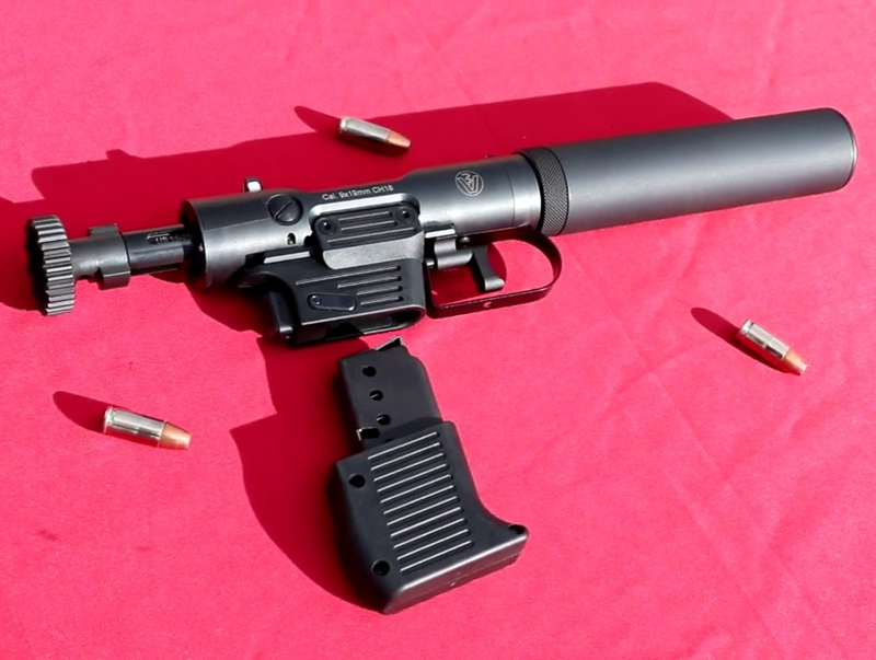 手枪射击和消音的原理不变,射手需要旋转90°并向后拉动枪身后方的螺栓才能完成开膛、退壳动作,反之完成一次上膛、闭锁,扳机仍然是一个简单的金属推杆,有一个可拆卸的金属护圈,增加了保险。消音器内被分割成多个腔室,子弹离开枪管后燃气先泄露到各个腔室内,并经过带弹性的橡胶垫缓冲,从而把子弹速度降低到音速以下,并且抑制燃气的爆炸声响,如果能配合发射专门的亚音速弹药则消音效果更好。