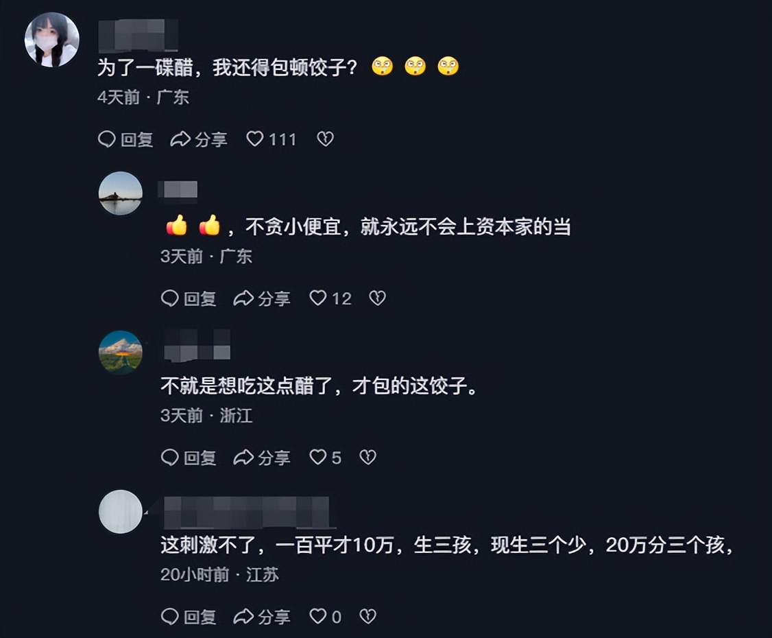 有网友形象地评论道:"为了20万补贴生三胎,就像为了蘸醋专门包饺子,实在不划算。"更值得关注的是,当下许多年轻人连"和面"(结婚)的意愿都没有,更遑论"包饺子"(生育)了。