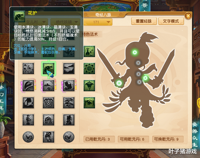 但在本届武神坛中,曲阜孔庙给大家带来了全新的对抗思路。简单来说,就是依靠莲台普陀的【荡涤】经脉进行对抗。该经脉可以通过水清、晶清的方式,给目标提供70%的抗锢魂术几率,配合抗封属性的话,对手即便有6封印,也很能封中。可以说,以后对面只要上地府,你就可以带点了【荡涤】的莲台普陀进行对抗,让对面的点杀战术直接破产!