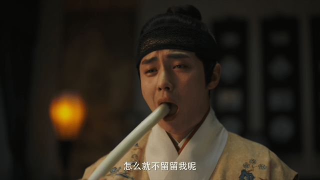 翟子路所饰演的男主齐梦麟一出场就在类似青楼的地方,紧接着镜头转到了他和女主探案,只见他装作认真地在树后面分析案情。