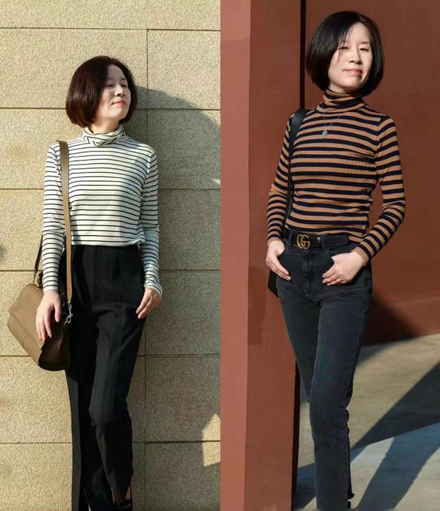 要想实现这种效果,颜色方面最好选择纯白和深色系进行外搭,它们具有很好的简约气质,并且纯白和黑白相接形成深浅对比效果更明显,带来更好的视觉印象,让穿着者更加出众、醒目,并且给人积极向上的感觉,不会让他人觉得你是老了还硬撑着装年轻。