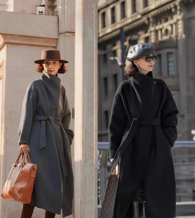 以最常见的大衣材料为基础的话,这里推荐羊毛呢、羊绒等毛料,它们保暖性好,品质出众,并且有着很好的垂感,用它们制作的大衣才更有造型感和姿态美。