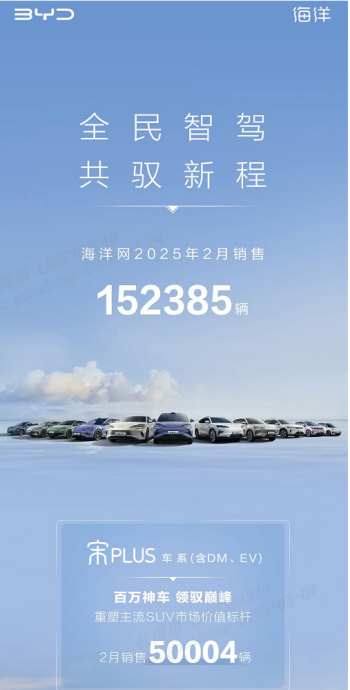 2025年2月,比亚迪宋家族再度以惊艳的市场表现刷新行业认知。根据乘联会最新数据,宋家族国内销量与海外出口双线飘红,累计销量近12万台(注:国内89650台+出口29855台),稳居中国SUV品牌销量榜首。这一成绩不仅印证了比亚迪在新能源领域的绝对领导力,更展现了宋家族以技术革新满足多元化需求的硬核实力。