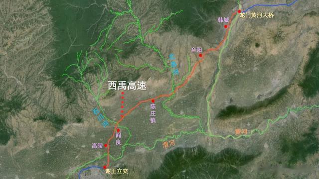 西禹高速,是京昆高速进入陕西的第一段,从龙门黄河大桥开始,经韩城,合阳,阎良,高陵到西安绕城的谢王立交,全长217公里,共有桥梁482座,其中的徐水沟特大桥最大跨径200米,号称西北第一跨,西禹高速处于渭河与黄河之间,在流域上主要跨越了北洛河流域和石川河流域。