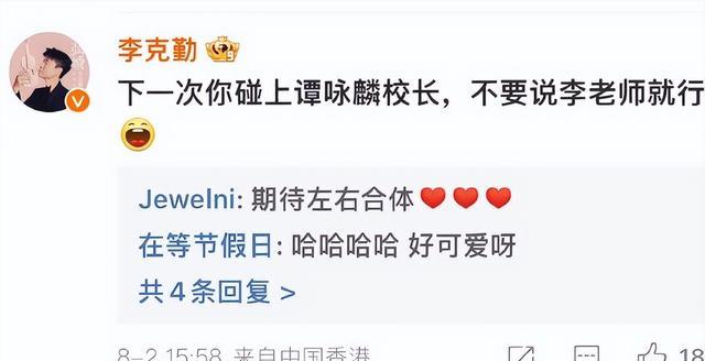 节目中李克勤不仅第一次“公演”就拿到了第一名,而且也非常受“后辈”们尊重,即使被其他嘉宾认成谭咏麟,李克勤也会非常可爱的留言“只要别将谭咏麟校长认成李老师就行”。