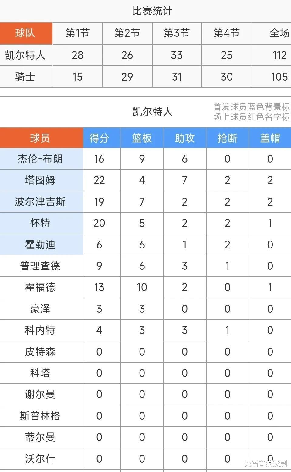 从比赛数据来看,杰森·塔图姆贡献了20+4+7的全能数据,而德里克·怀特同样砍下20+5的出色表现。他们的稳定发挥是凯尔特人队取胜的关键。 然而,我们不能忽视骑士队球员的努力。多诺万·米切尔全场砍下30+分,展现了其超强的得分能力,但可惜的是,骑士队在关键时刻的防守和关键球的把握上略逊一筹。