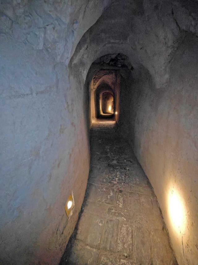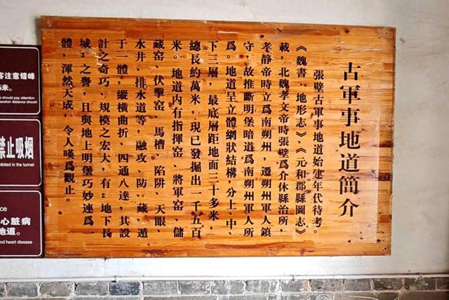 现在地道开放的有千米左右。古戏台左侧的偏殿那里就是入口。下地道往西走,地道有一米多宽,2米多高,倒是修整的比较平坦,但比较单调,有点憋气,体验感不强,。