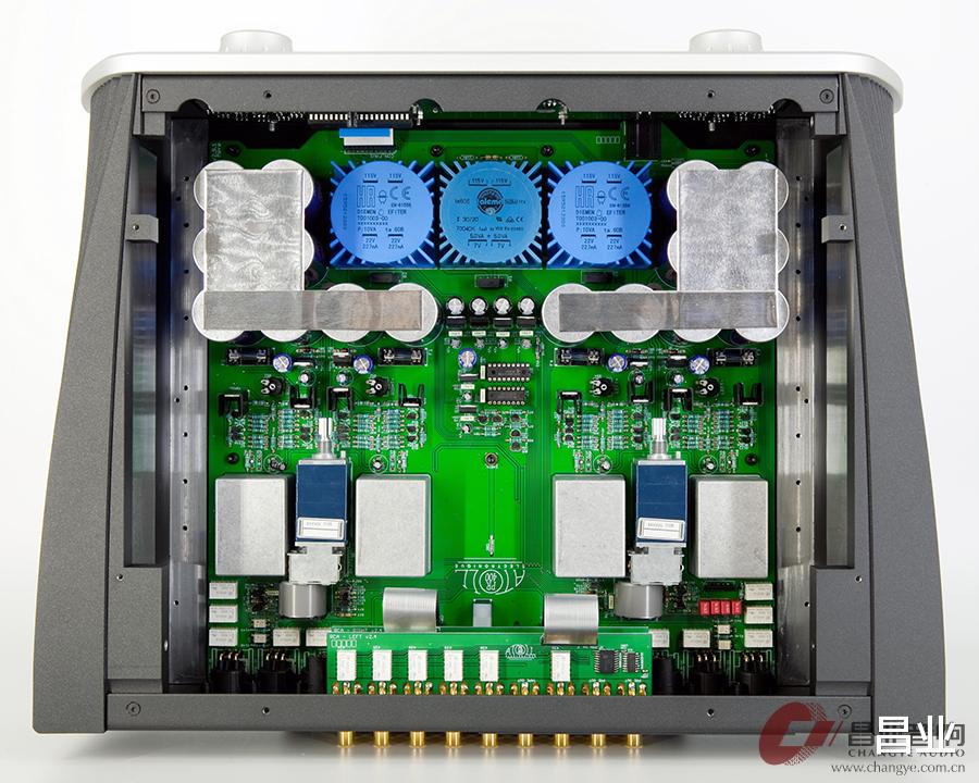 PR 400 Signature 前级的设计注重完整信号纯净度。首先,为了防止放大级受到工作电压可能出现的电气污染影响,PR 400 Signature 为电源配备了累积了总容量为 112000 μF的滤波电容器!此外,内部屏蔽进一步保护信号免受外部电磁辐射的影响。