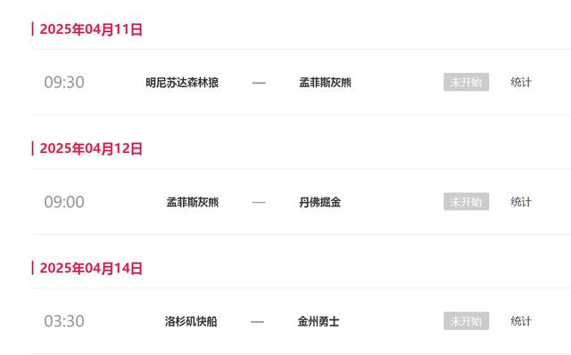 率先开始的是森林狼VS灰熊,然后是灰熊背靠背对掘金,最后是闭幕战勇士VS快船。