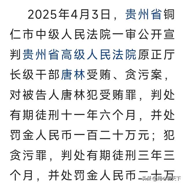 据有关网络报道,曾经担任贵州省六盘水市中级法院院长的正厅级干部唐林,贪腐竟高达2000多万,这说明中级法院院长控制不好自己的私欲,法院就成了他的家天下,在审判别人的同时,自己成了被告,这岂不滑天下之大稽?