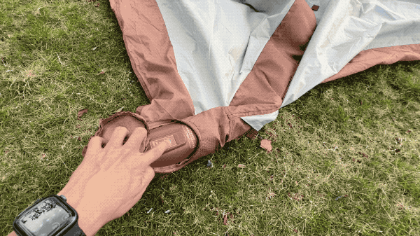 帐篷顶部是透气的,所以需要一张顶帐用来防雨,只要4个角勾上挂钩就行。可以看到帐篷内部还有一个挂钩,可以挂上一个小灯用来照明。