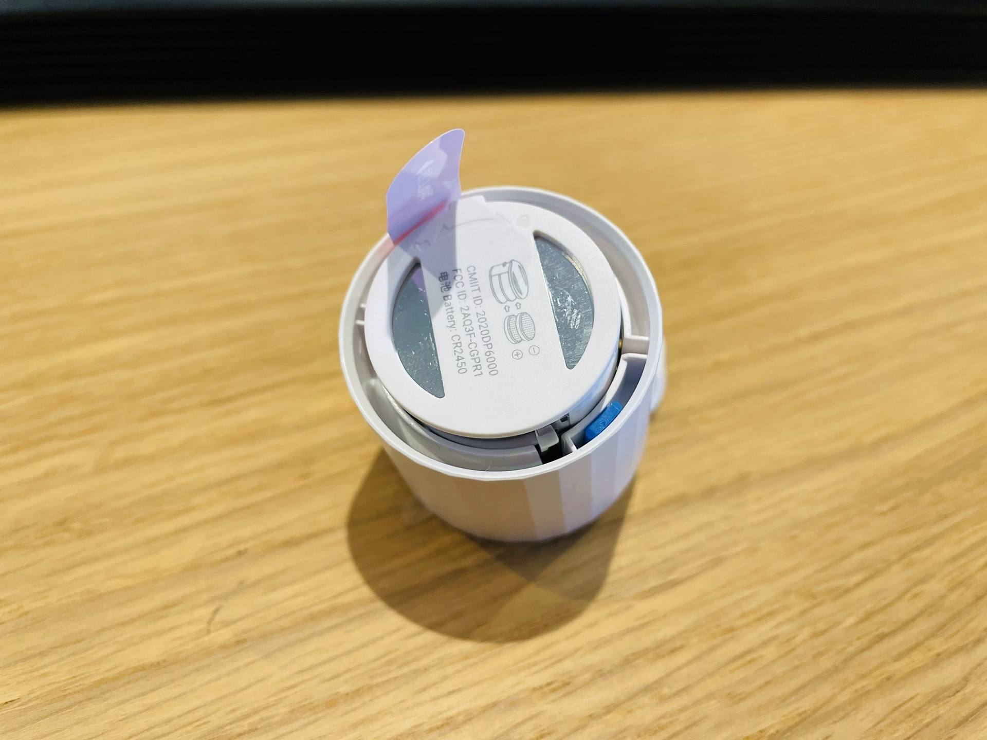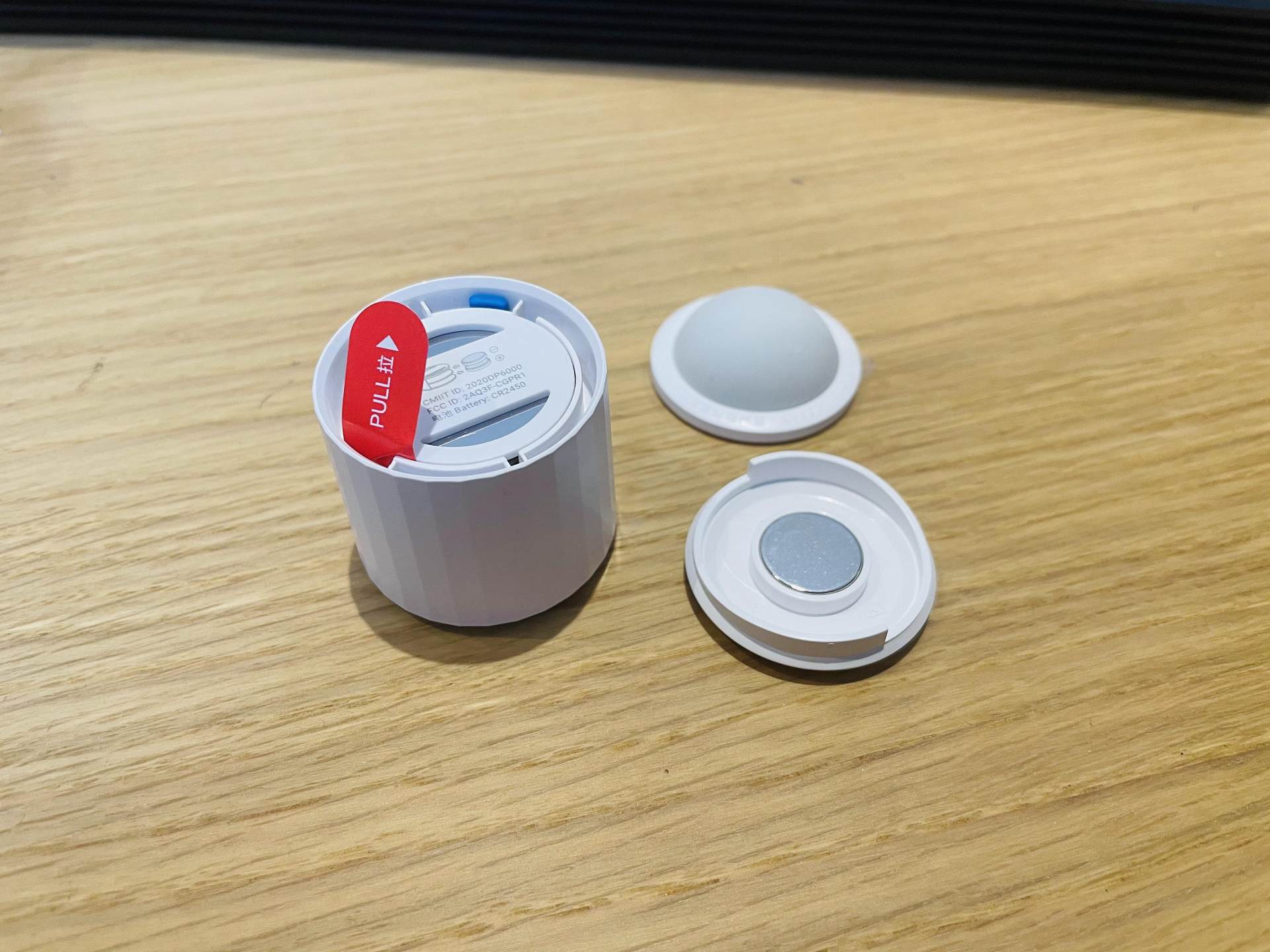 ▼传感器后盖的拆卸采用了磁吸的设计,相比较与米家传感器,磁吸的拆卸方式更加方便快捷,按照后盖上的提示,轻轻旋转就能拆下后盖,后盖会以旋转的方式浮起,可以看到后盖的磁力比较强,基本上接触到了就能快速吸附