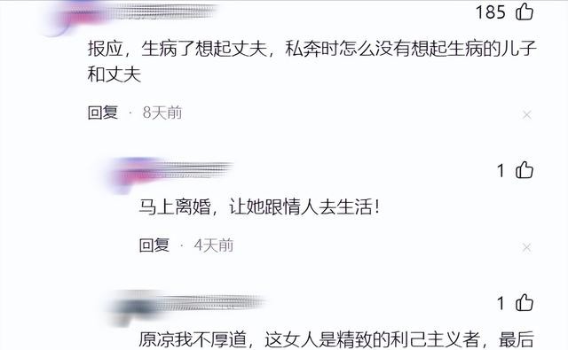 没错,她完全没有想过自己儿子的死活,而是把丈夫仅存的那么点儿存款都给带走,和相识不久的,汤浩私奔了。