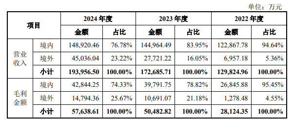 申报材料及审核问询回复显示,报告期内,瑞立科密境外销售收入分别为5926.73万元、6573.86万元、2.02亿元和1.53亿元,占主营业务收入比例分别为4.40%、5.06%、11.68%和17.23%。