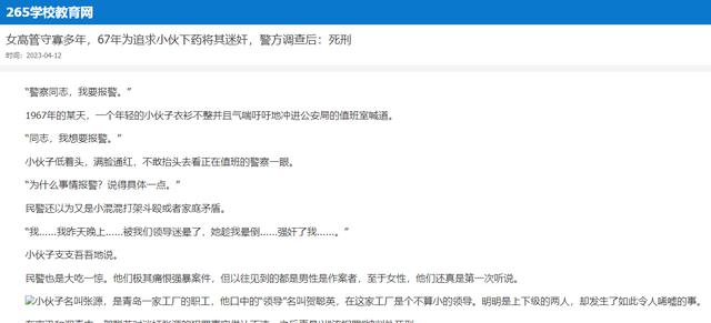 学校教育网——女高管守寡多年,67年为追求小伙下药将其迷奸,警方调查后:死刑