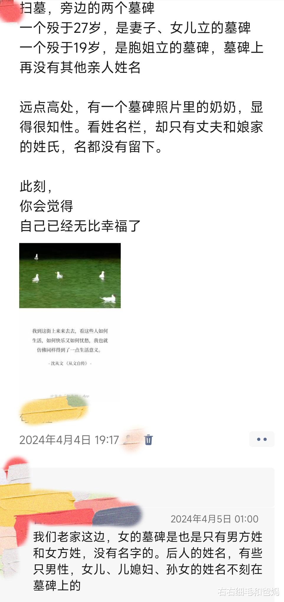 去年清明节,去老公家乡扫墓,看到一个墓碑上的奶奶,姓名牌只有姓氏,没留下名字,发了通感慨。