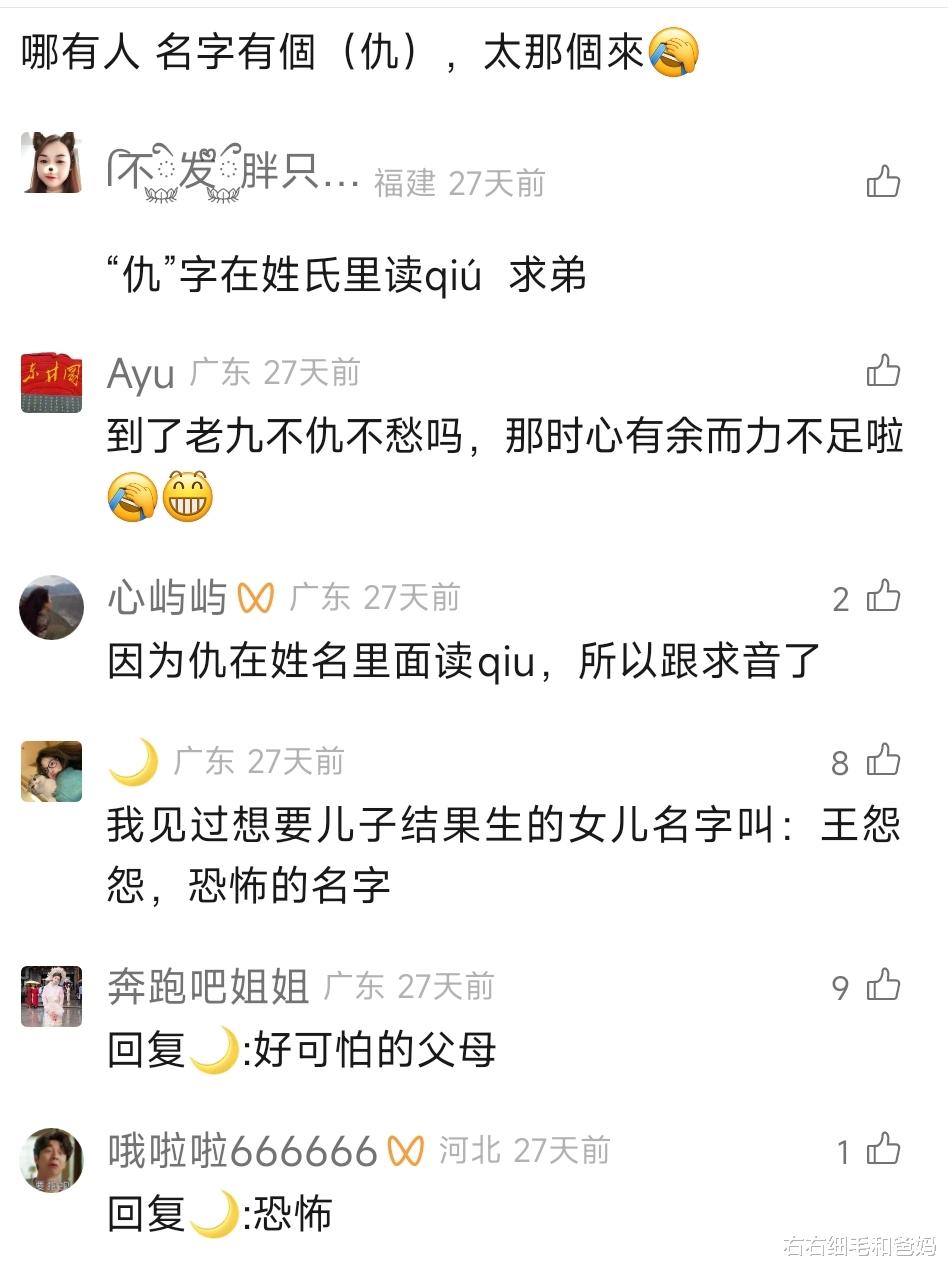 评论区的科普小分队来正言了:“仇在姓氏中与“求”同音,还是想“求弟”。”