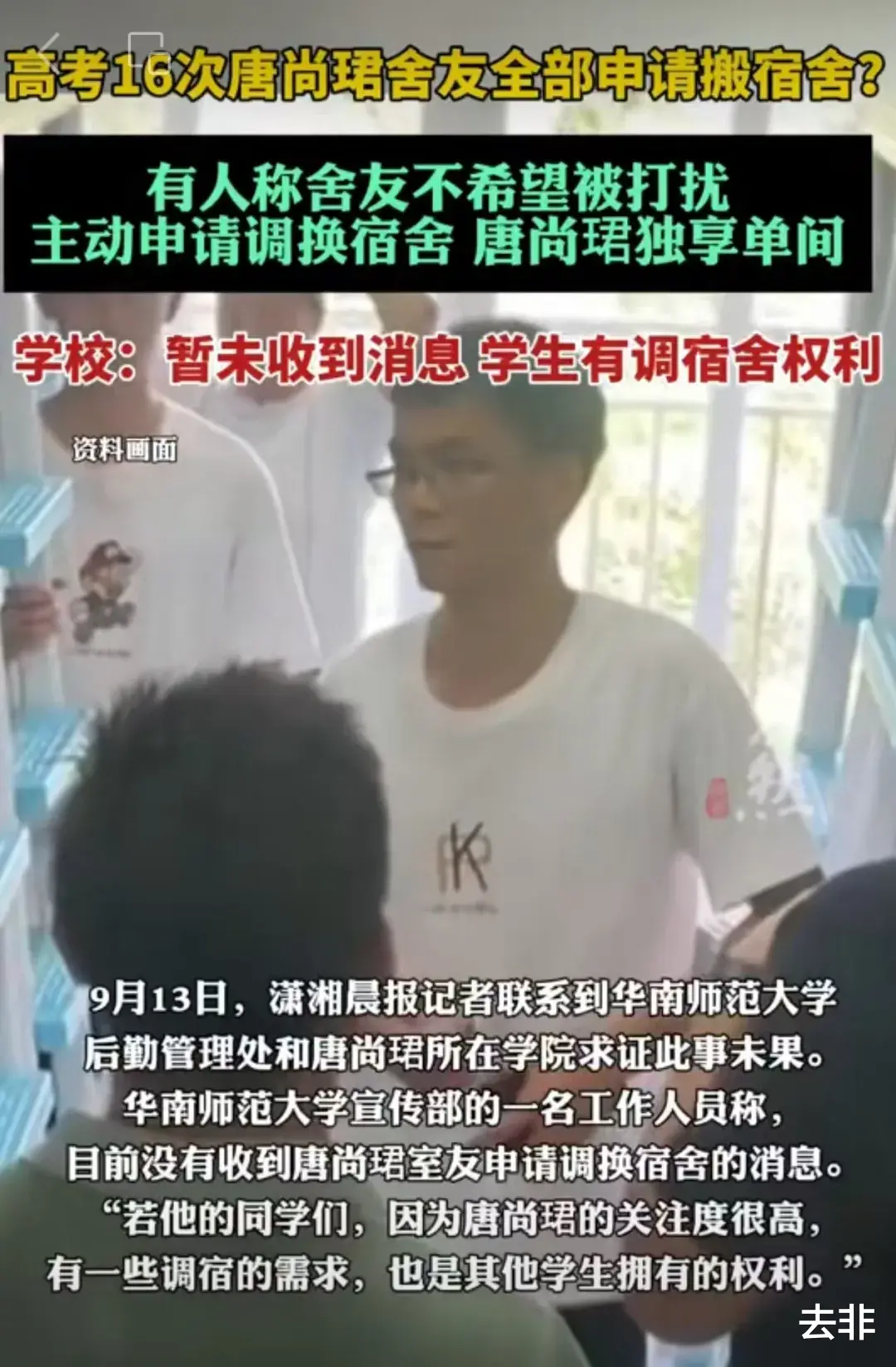 近期唐尚珺回应大学室友全搬离传闻:有一名室友介意被恶搞搬走,“我给他道歉!