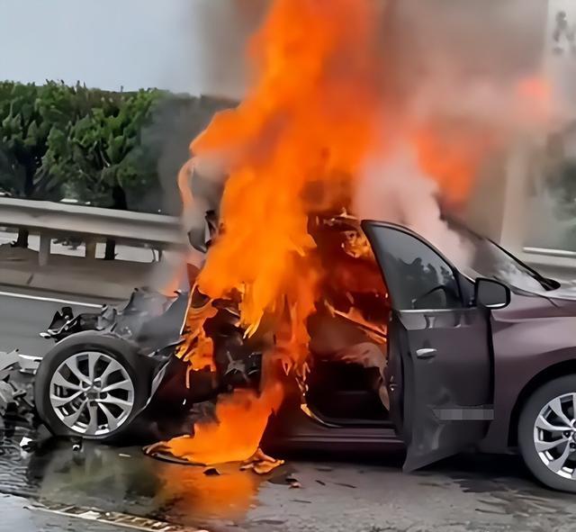 至于起火的原因,或许是因为剧烈的撞击,导致油箱泄露,这才致使小轿车发生了严重的起火现象。